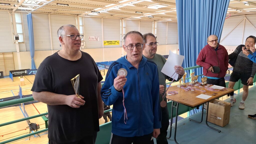 …et où on revient avec des médailles, des anecdotes, et ce petit cocktail typique vétérans : compétitif mais détendu, sérieux mais toujours prêt à chambrer 😅🏓