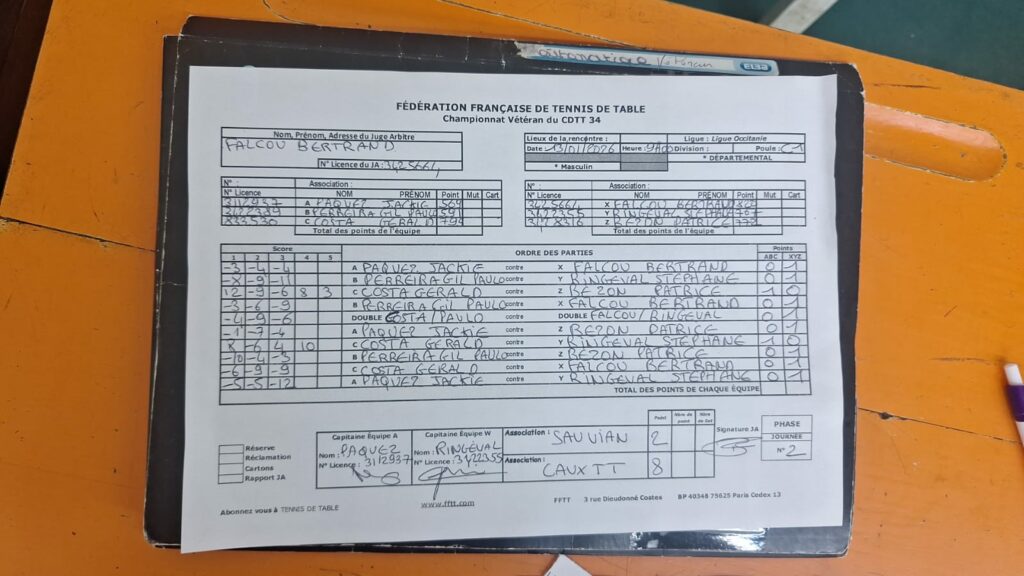 🟦 Match 1 – Mardi 13/01 à Caux : CauxTT vs Sauvian | Victoire 8–2 ✅