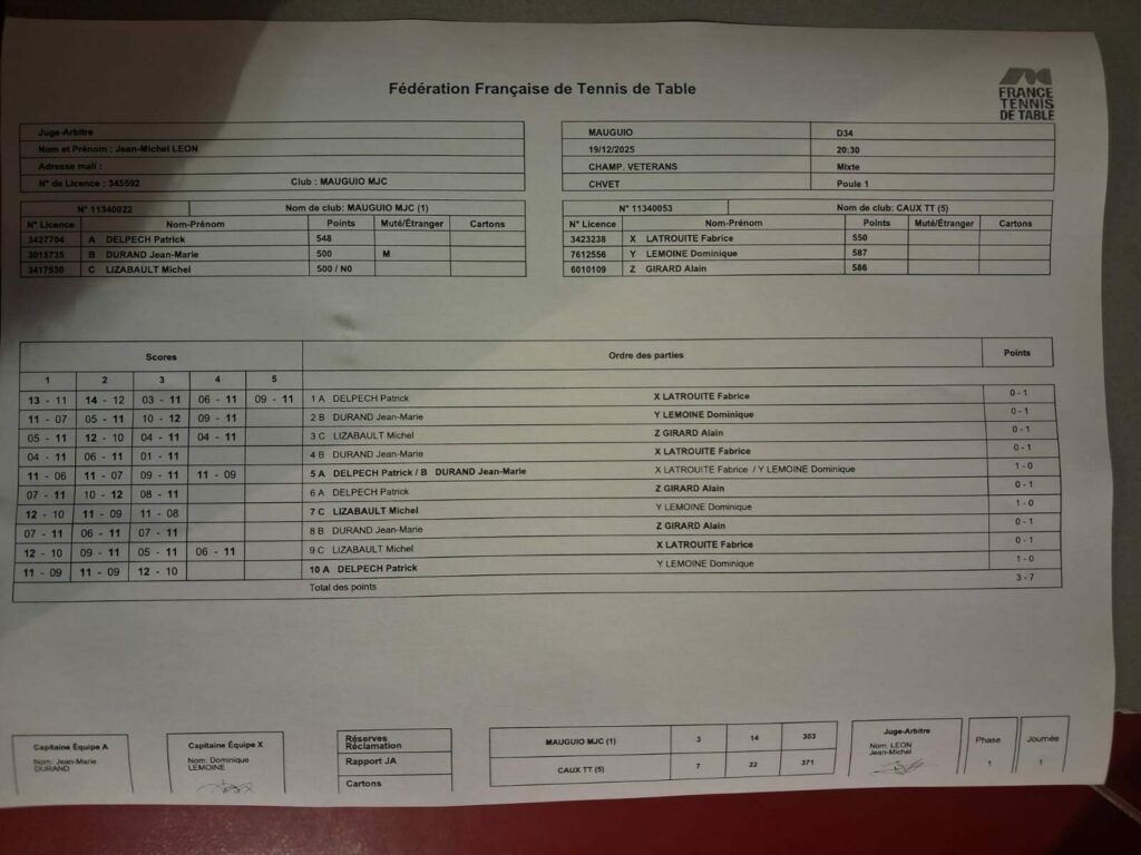 📌 Score final : Mauguio MJC 3 – 7 CAUXTT5 ✅